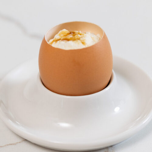 - Remove from the water, dry the outside of the shells, and place each in an egg cup.